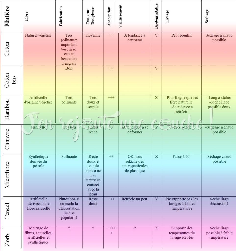 Cet article de Planet addict résume également très bien les différentes fibres ainsi que leur impact écologique.
